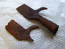 Ridge Hook or Thatcher’s Knife: Usually a thin, straight, or convex, blade used to produce the decorative pattern to the lower edges of the ridge of